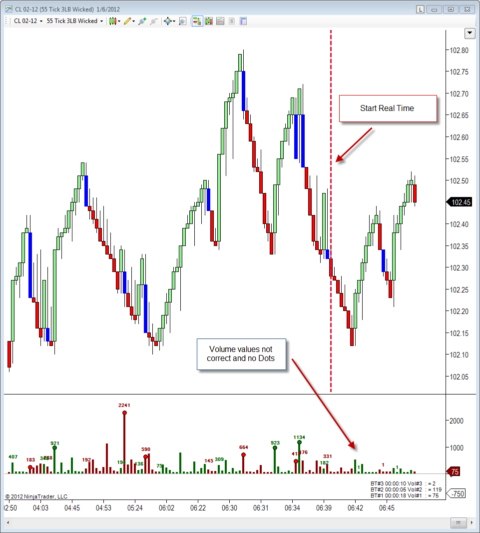 Problem Caused by Transition Bar from Historical to Real-Time Data The problem has to do with the transition from historical bars to real-time bars. This is what I think that NinjaTrader does: