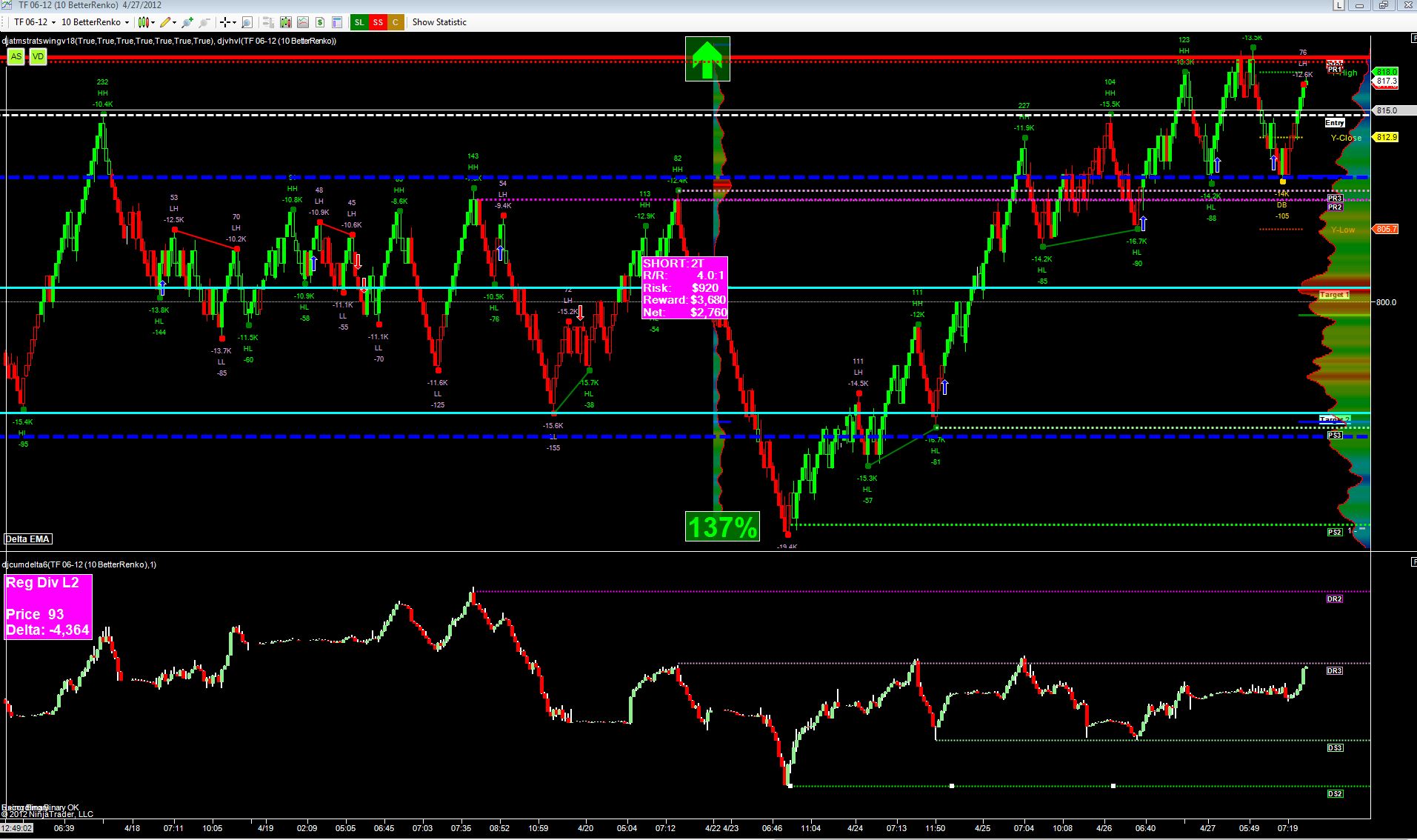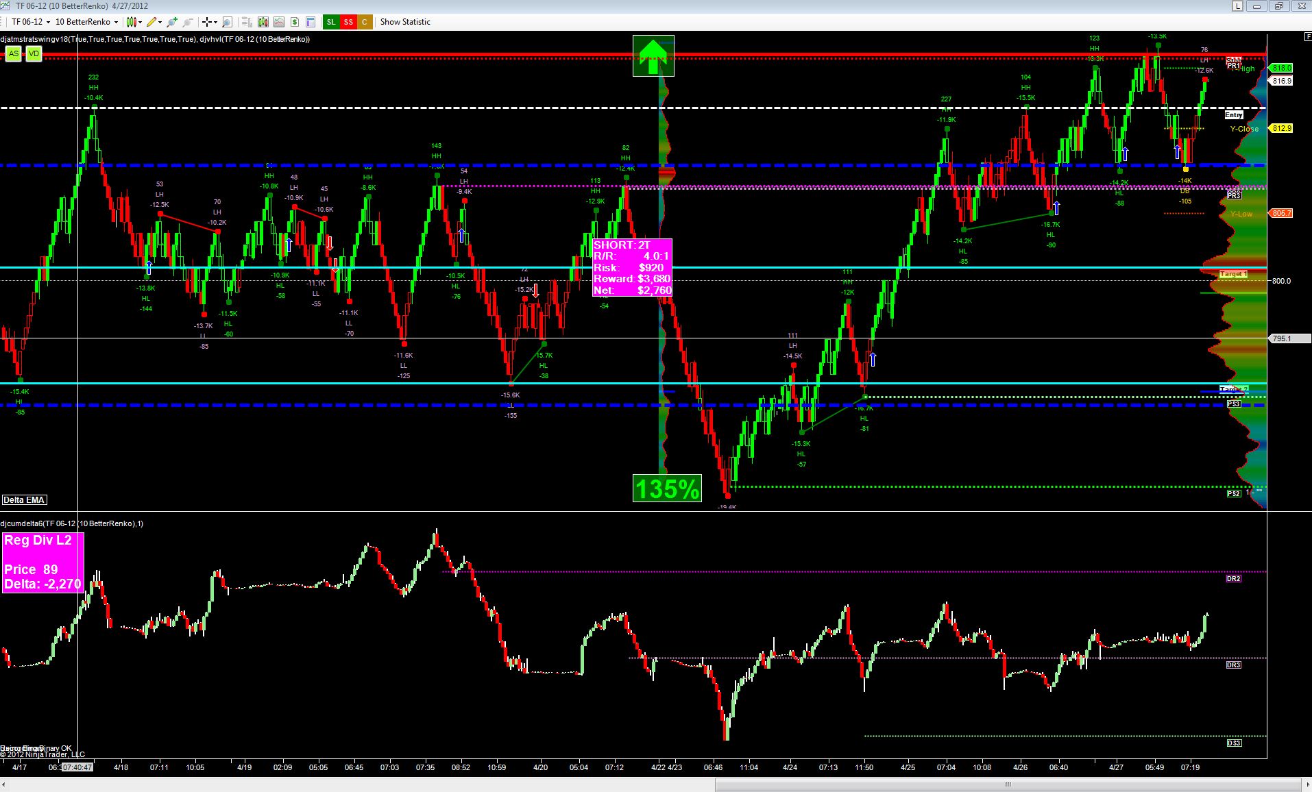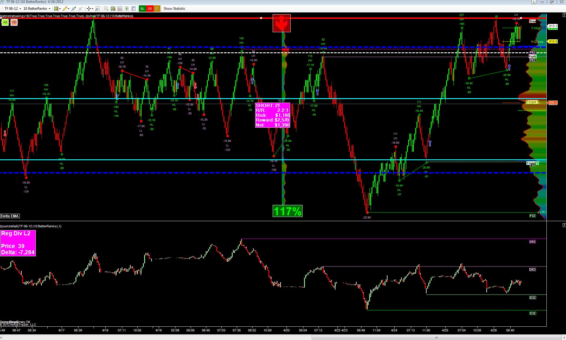 Once I manually insert DS2 ray I then draw another corresponding ray PS2 on the price panel. What I'd like to do now is automatically draw a PS2 Ray on the price panel without me having to manually draw it. So basically once I draw the DS2 Ray it should automatically draw the PS2 at the low of the bar on the price pane. When I move the DS2 line somewhere else then the PS2 line should also move.