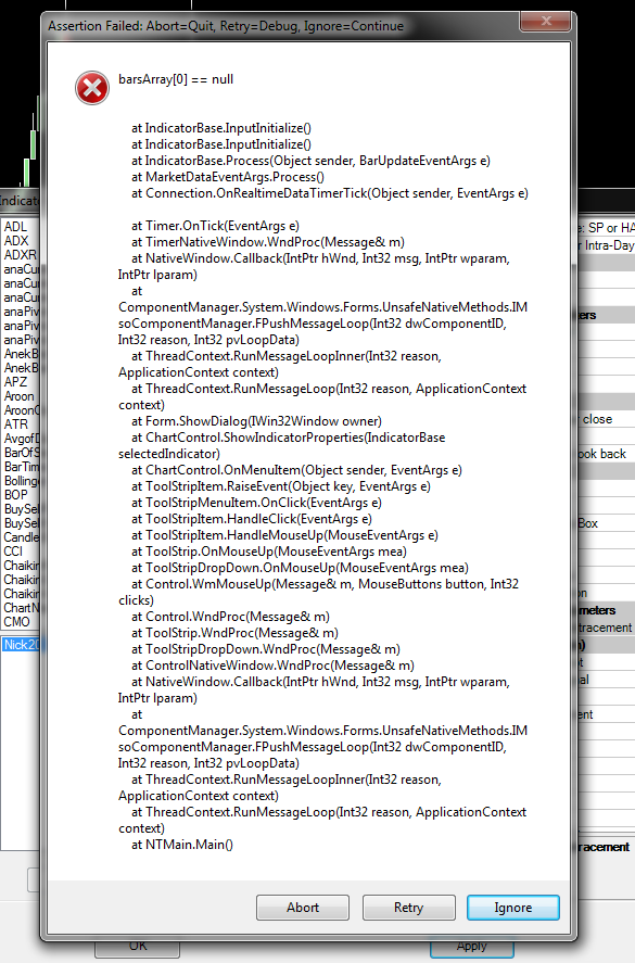 I'm getting the above pop-up error whenever I try to add or change parameters for my indicator. It works fine, however, if the indicator was already pre-loaded, and I do a refresh (F5).