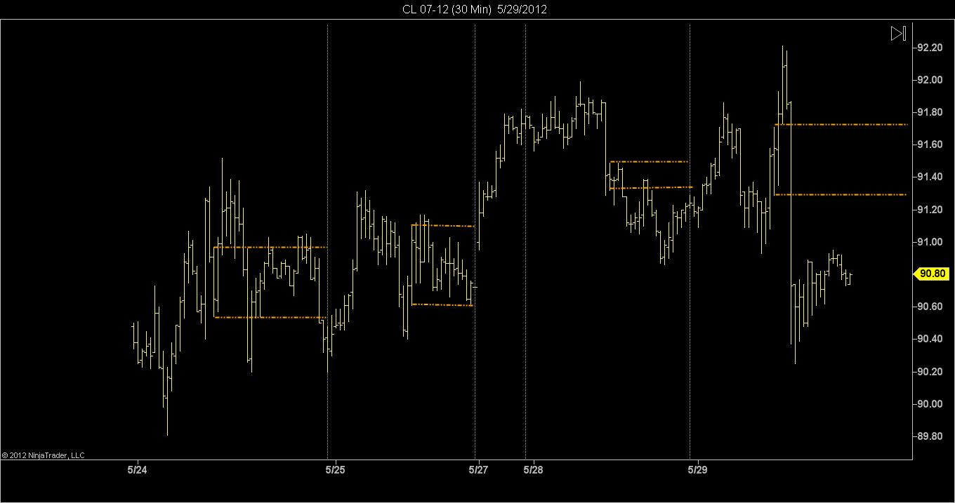 Originally posted by sh_daggett View PostThis sounded like a nice little exercise, so I threw one together. I have seen better choices discussed in the forum, but here's a simple little Opening Range indicator that lets you set the session open time and the range end time, so you can specify the exact time range you want to see the high and low of. It draws lines at the high and low of that range. I only tested it on tick and minute charts. Time frame of chart must support the range selected.