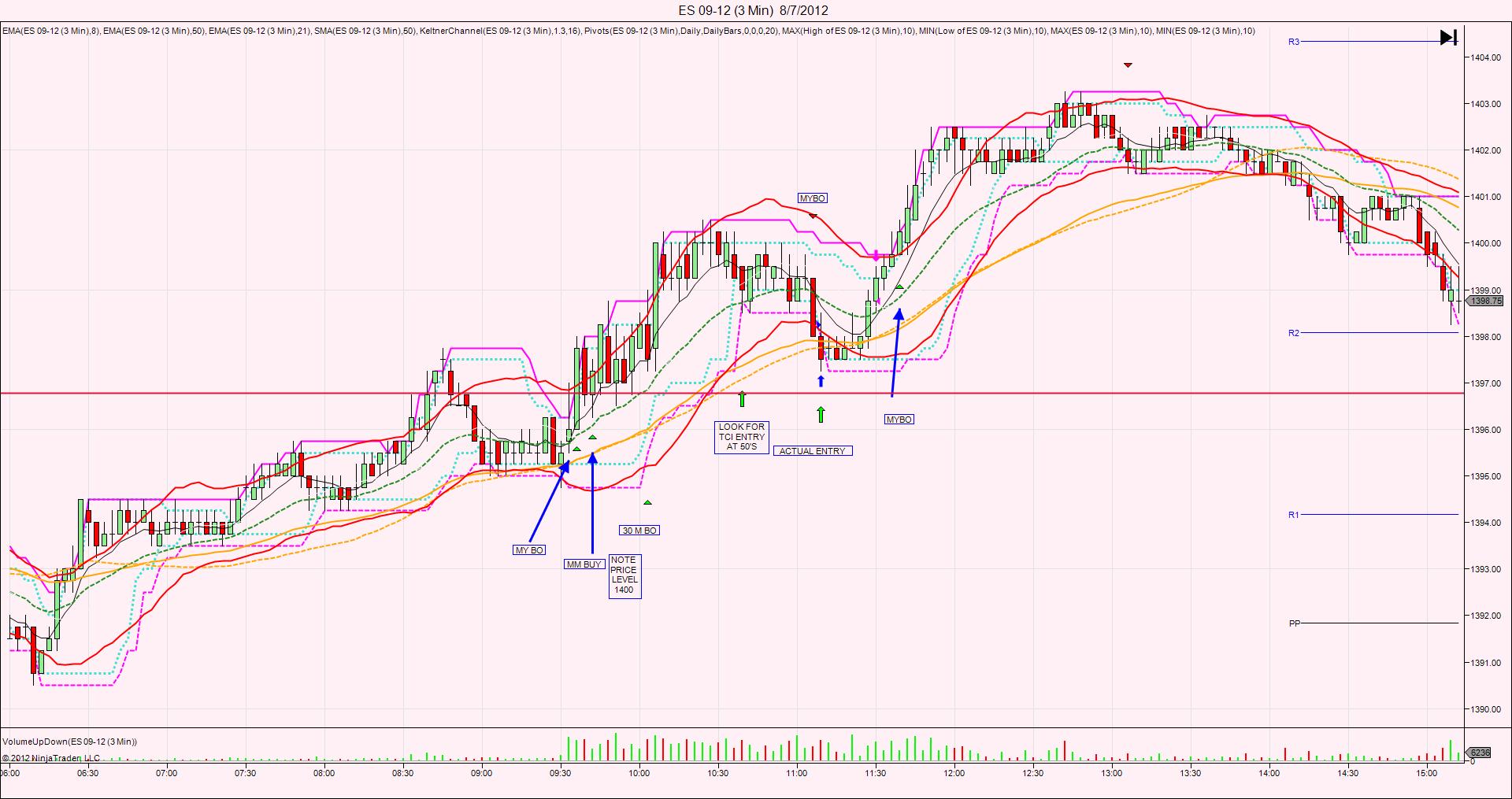 When a bar closes above/below both of 2 EMA's and the shorter is above for a buy and below for a sell.