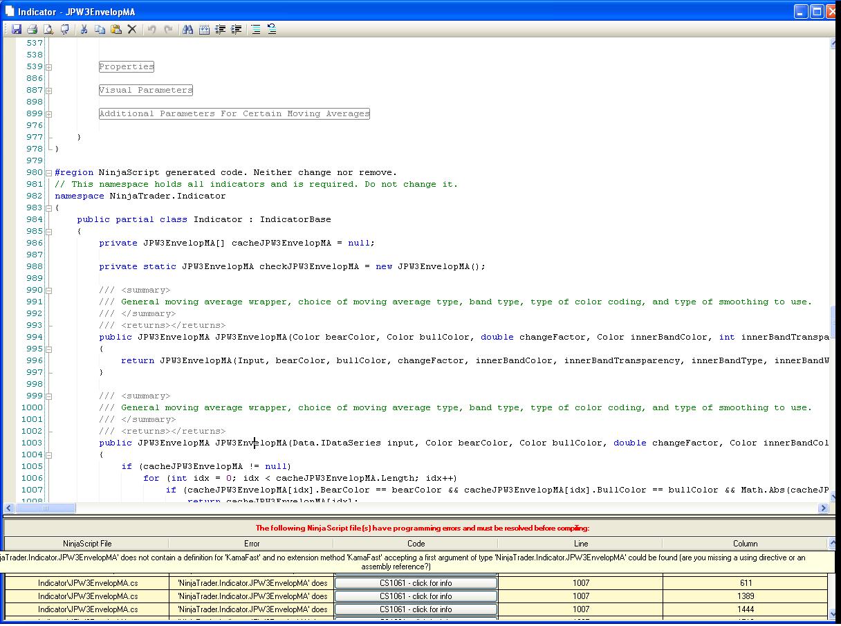 However, the script won't compile because the "NinjaScript generated code. Neither change nor remove." has refernces to "KamaFast" in it. Since this is commented out, it fails.