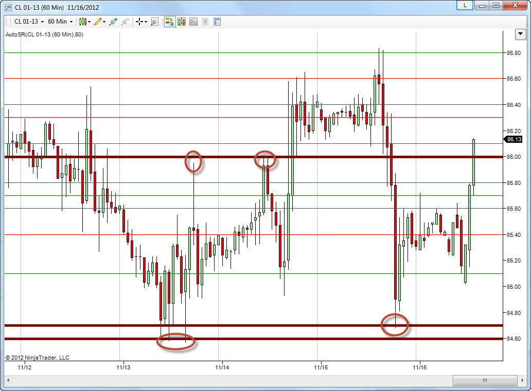 To not clutter up, found pivots are rounded to one decimal. So a pivot found at 86.23 will be drawn at 86.20 etc.