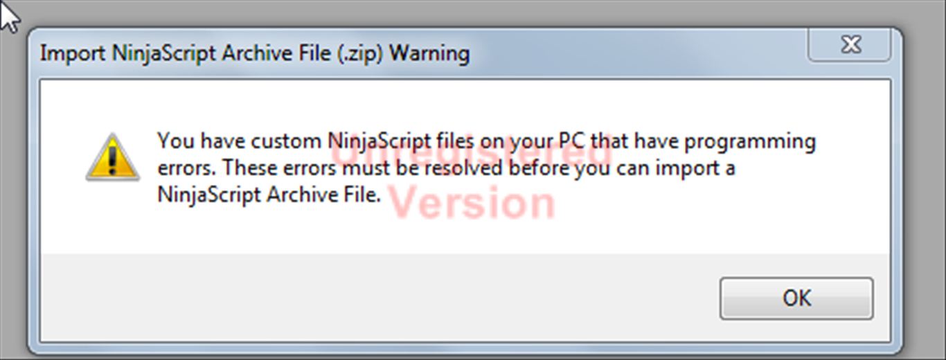 I should add if I try to import NJ I can not becaue I now get an error saying I have custom NJ script files on your PC that have programming errors.