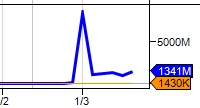 The first shot is where when it is first loaded and the screen is all the way over to the right (the furthest one can go to price action) it shows some movement on the last few bars, but then just extends out left (the history of the 2 blue and yellow averages) in a straight line showing no movement. However (see the 2nd screen shot), when I scroll back in time just a few clicks of the mouse wheel to look further back in time then suddenly it shows the movement on the averages for the blue and green line perfectly as it should.