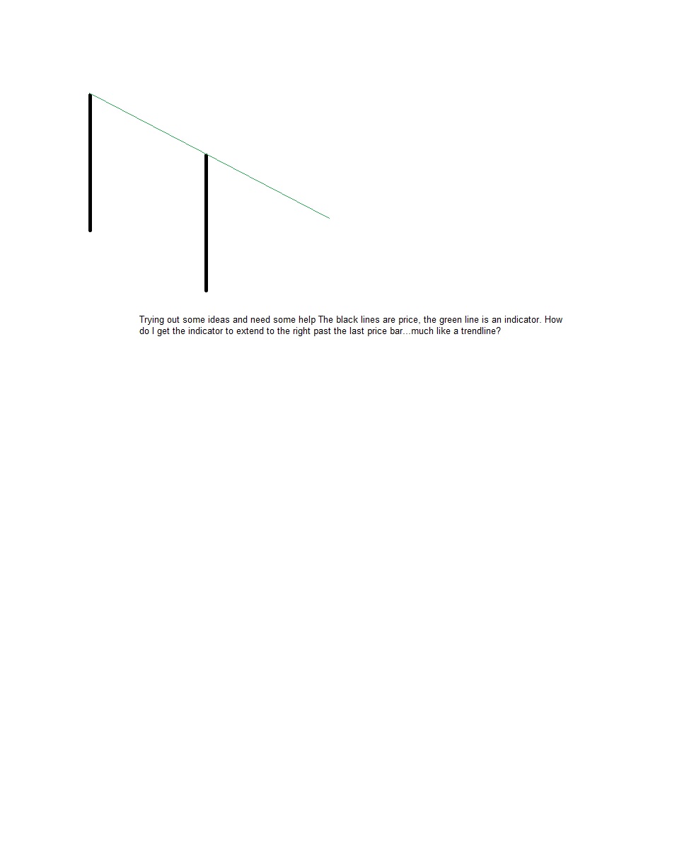 I want to program an indicator that much like a trend line goes past the current bar in to the future. That instead of using swinghigh and swinglow, it would use the current bar close and go back "X" bars to a previous close. It would not fluctuate between those 2 points. If it works out studying it over time, I will want to include it in my automated strategy.