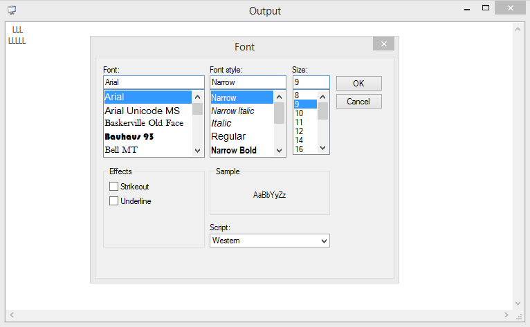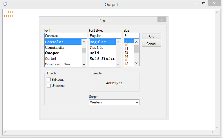 See the attached images from the same Output Window with different Fonts.