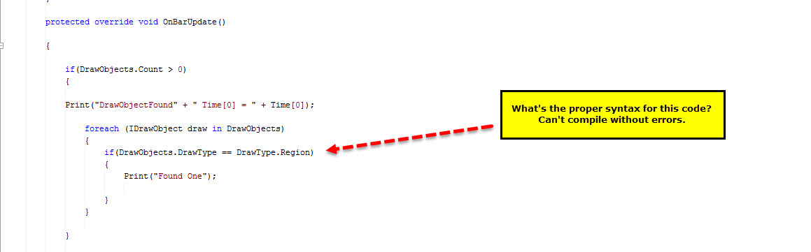 I have an additional question. I'm trying to expose the DrawRegion objects but having problems compiling the code. Can someone help? Trying to follow the example in Ninja Trader Help but stuck.
