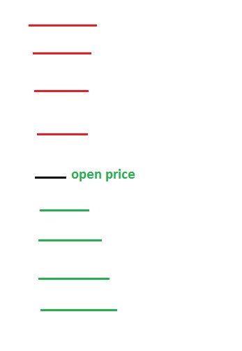 I want to have a line drawn every XX ticks, above and below the open of every bar....and multiple ones, not just one line above and below, so the bar opens at X okay, so I want a bar drawn automatically on the open of the bar XX ticks(whatever the user sets) above and below that open price, and then the same amount of ticks above that line all the same distance apart.