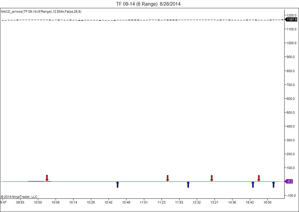 I like the coding for the cross of slow & fast of MACD signals and displaying arrows. But instead of cross of slow & fast MA I would like to display in Price Panel the blue arrow whenever the slow MA line cross the zero line from below and red arrow whenever the slow MA line cross the zero line from above. It will be greatly appreciated if you can help me coding this for NT7. Thanks.