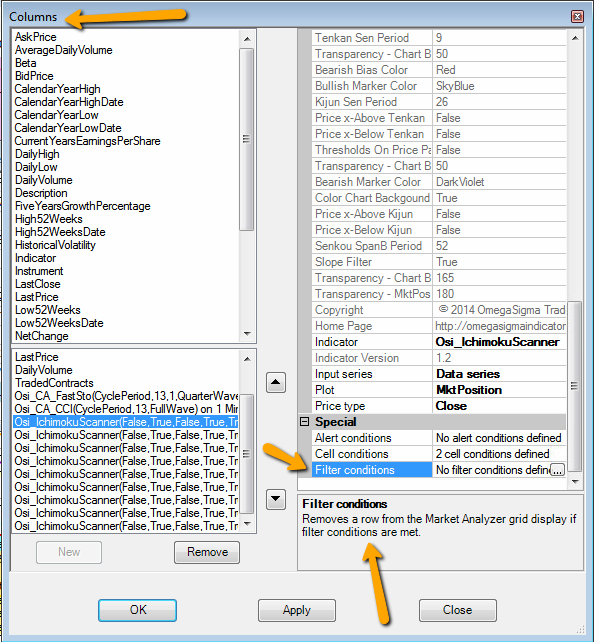 Where C1 - C9 are previously defined conditions. If I can put a dot on the chart, I should also be able to use this "if / else" to keep or eliminate a ticker being listed, say, in the Market Analyser window, which BTW does run my Indicator against my list of stocks, but of course doesnt produce what I'm looking for.