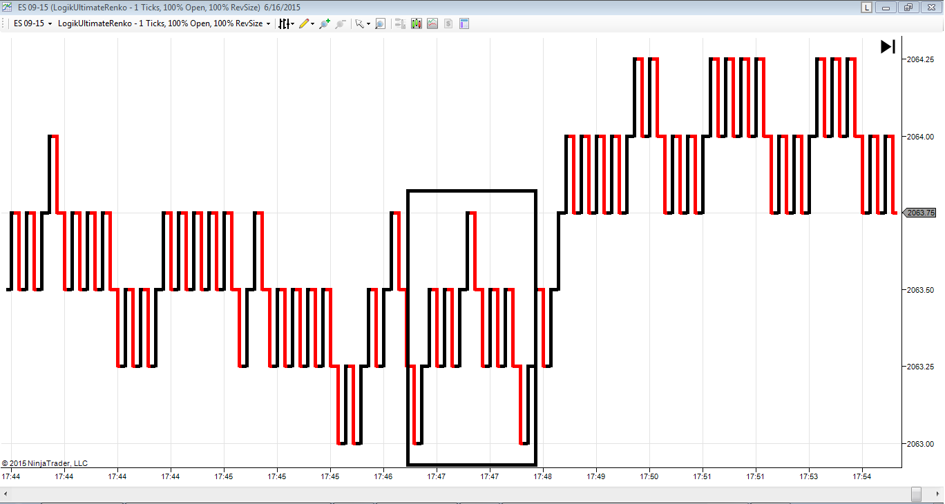 I mean,you get the point.Quite rough example,but i`m sure you get it.By the same token you can construct any pattern using just 1 tick range bars combination.I experimented with sort of the "formula" above and the pattern aligned pretty good there.