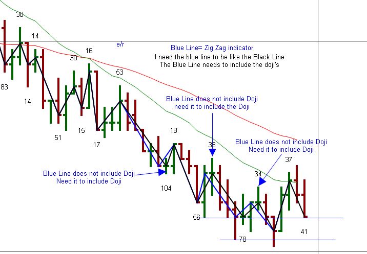 I appreciate any assistance in helping me modify the zigzag indicator so that it includes the doji's. Please see the attached screenshot. Thank you .