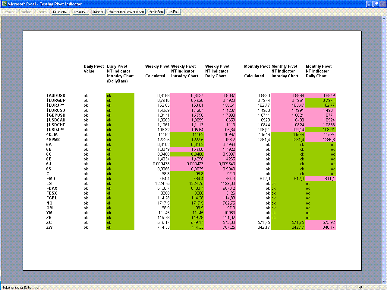 Details of the test below. It shows that the Daily Pivots of NT are reliable, whereas the Weekly and Monthly Pivots are inconsistent. The indicator would even produce different results for the same Pivot on daily and intraday charts.