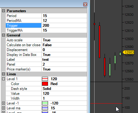 when i change the parameter in the indicator settings (i.e. when just using the indicator in a chart and not using it via a strategy) from 120 to 100, the line does not change