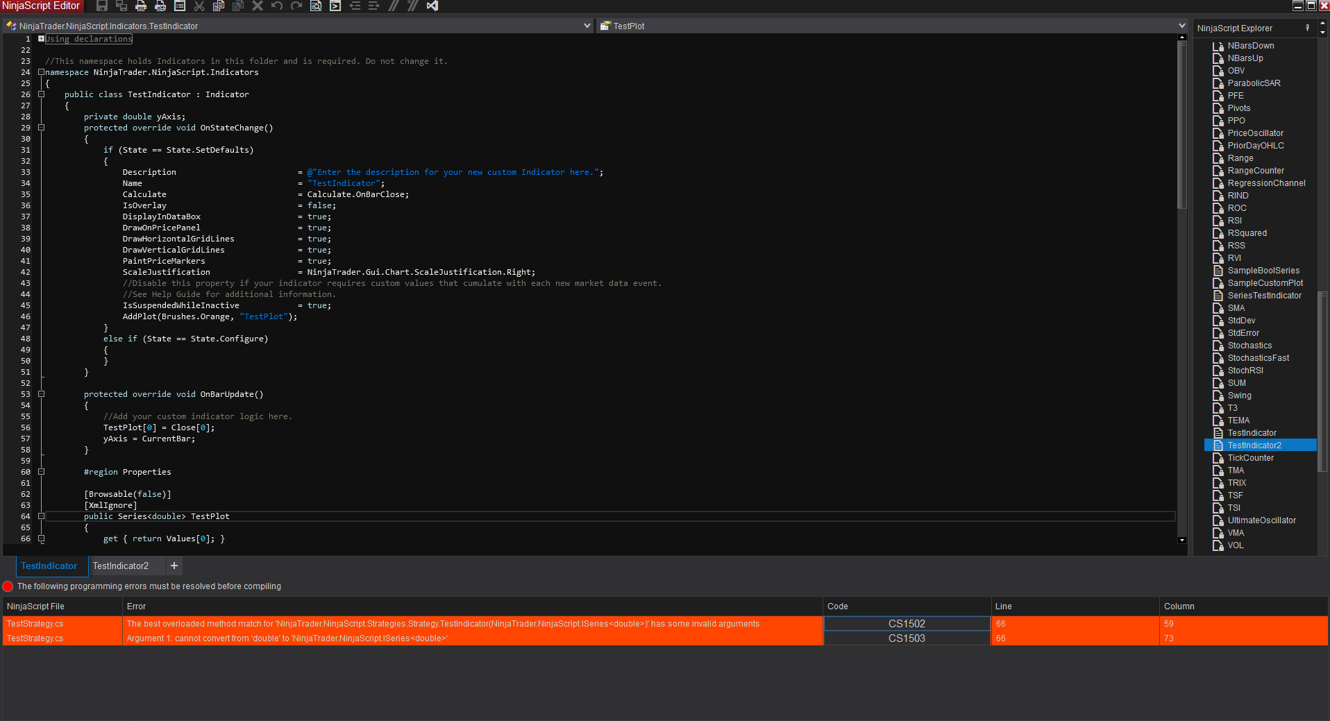 I am usually used to indicators not Compiling and then finding the error but in this case the indicator Compiles just fine, it just spits out the error in the Output Window: Object reference not set to an instance of an object.