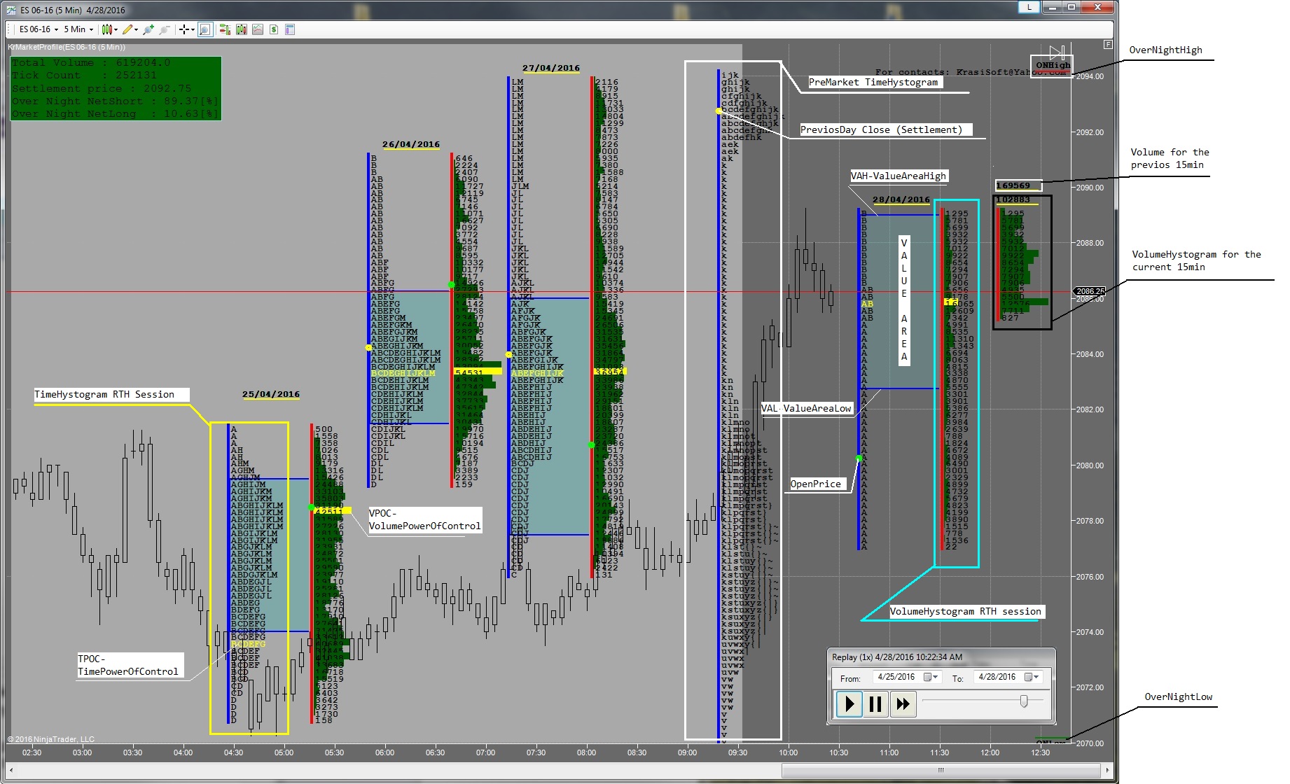 1. collecting the historical tick volume information and save it on the HDD in folder:C:\Program Files (x86)\NinjaTrader 7\KrMarketProfile\