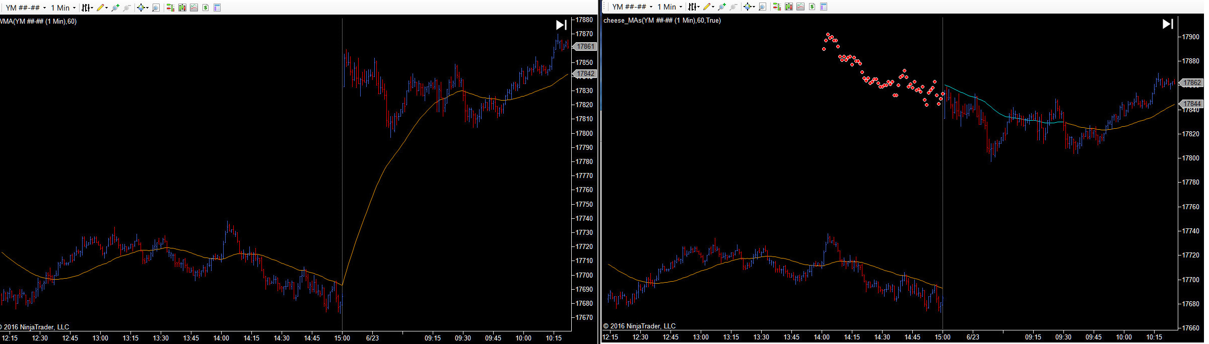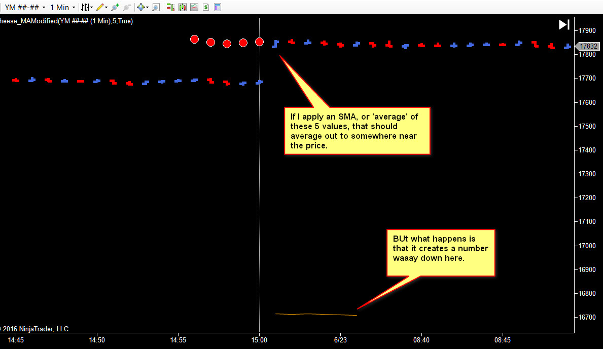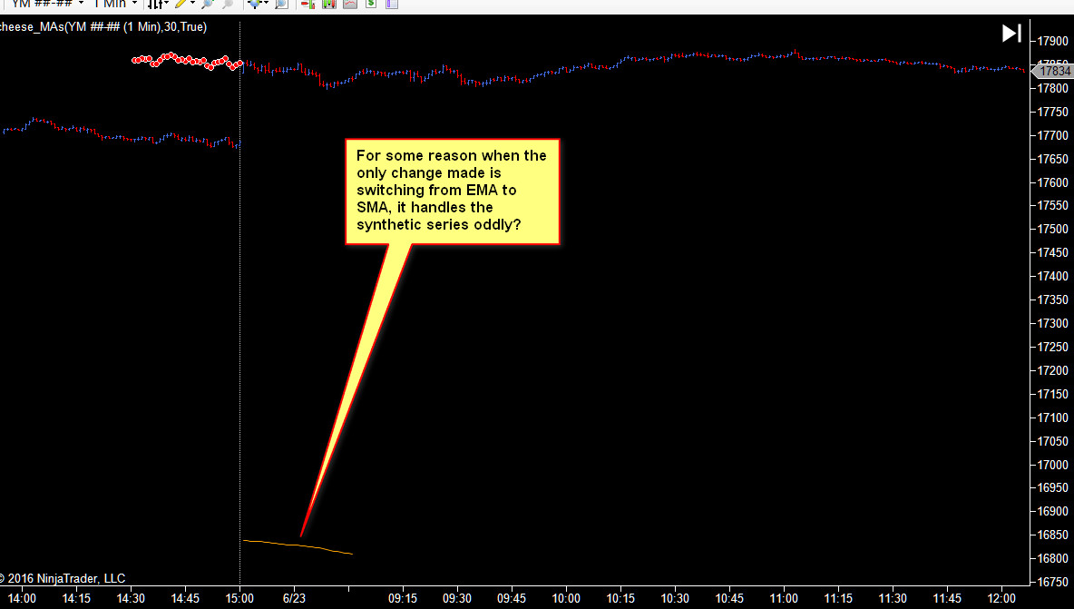 So the problem is that this works exactly the way I want using "EMA." But when using SMA, or Linear Regression for example, it just doesn't work the way it should? I believe this is just the way the built in NT MAs handle being referenced.