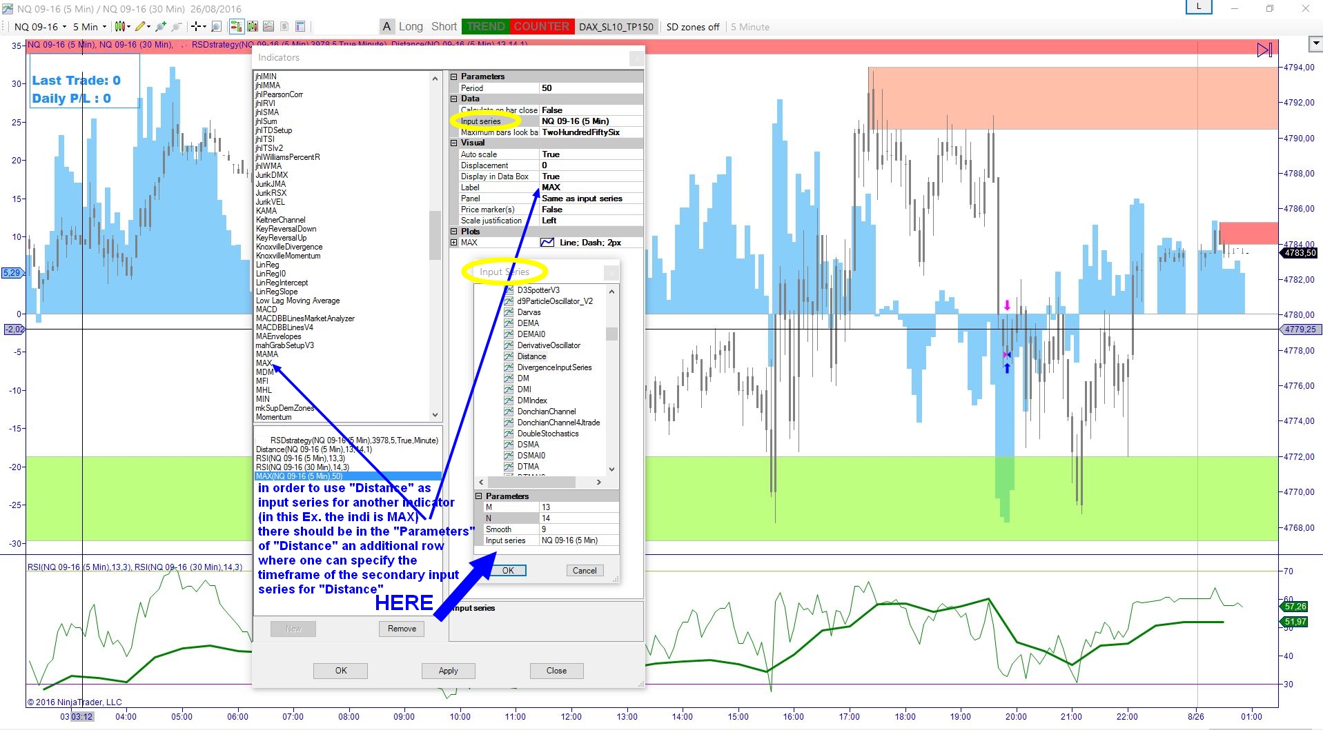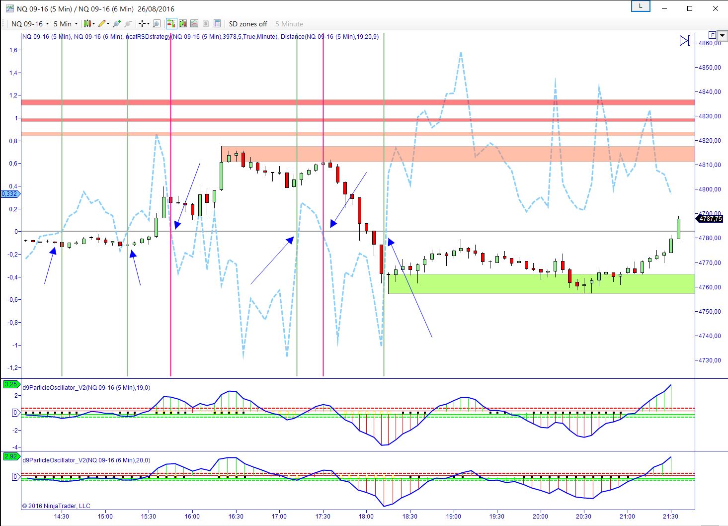 I first applied this indi "Distance" to a NQ chart, but I realized only later on that it was, (most likely, as far as I can understand) doing its calculation on the ES and not on the NQ, the primary instrument .