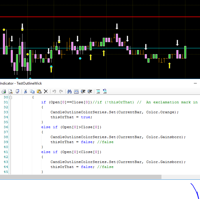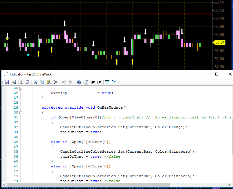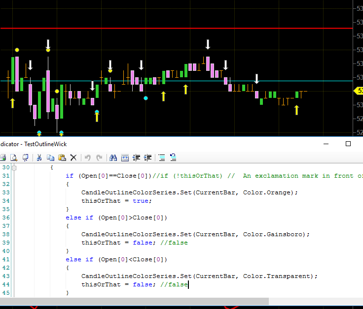 I tried adding && WickColor=Color.Yellow; after BarColor=Color.Yellow but there is no such word.