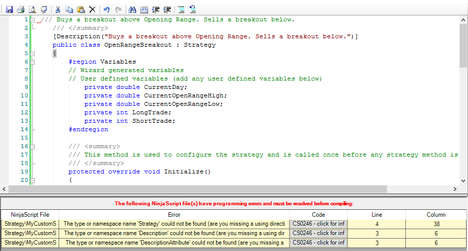 Stragety\MyCustomStrategy.cs namespace name Strategy could not be found