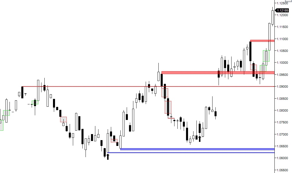 In this image you can see the red resistance rectangles going through the candles, I'd like the rectangle to stop once the price has closed over the rectangle to represent a violation of the support or resistance level.