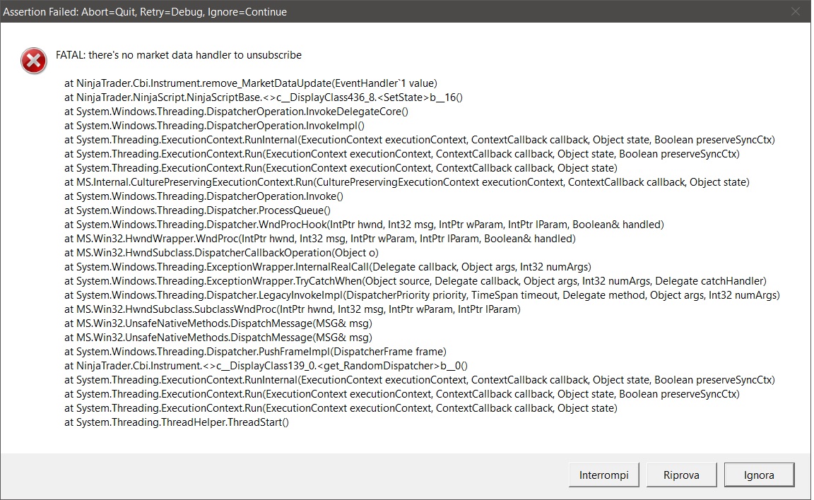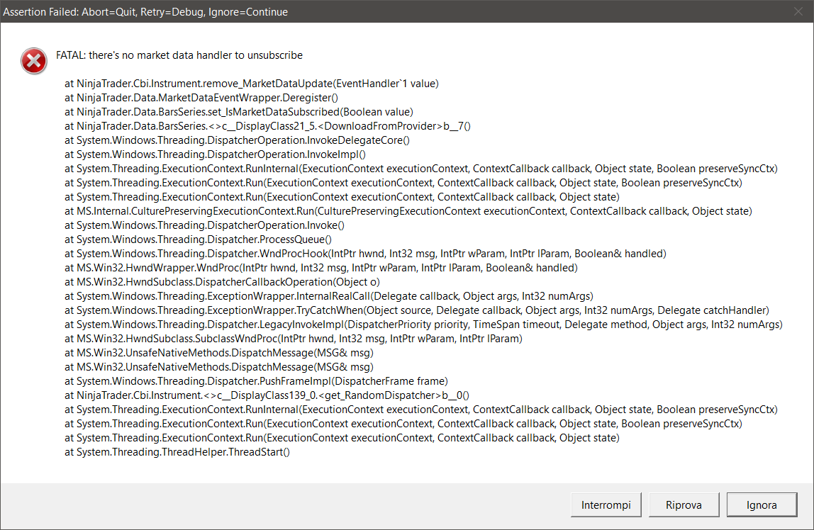 I've tried being as cautious as possible by wrapping it in a try/catch, but it doesn't save it from the occational "Fatal: there's no market data handler to unsubscibe"