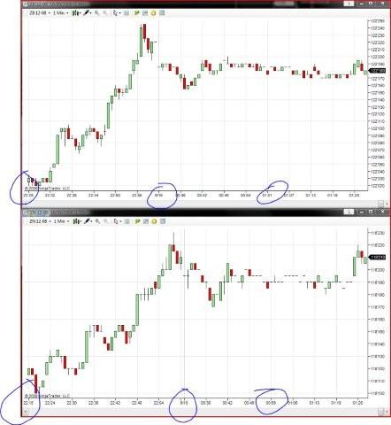 How can I get two charts of different instruments to have the same horizontal scale (time)? I've tried creating them one right after the other, dragging the axis, etc. to no avail. The instruments share the same price notation, trading hours, etc.