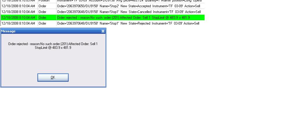 Order rejected from IB error 201