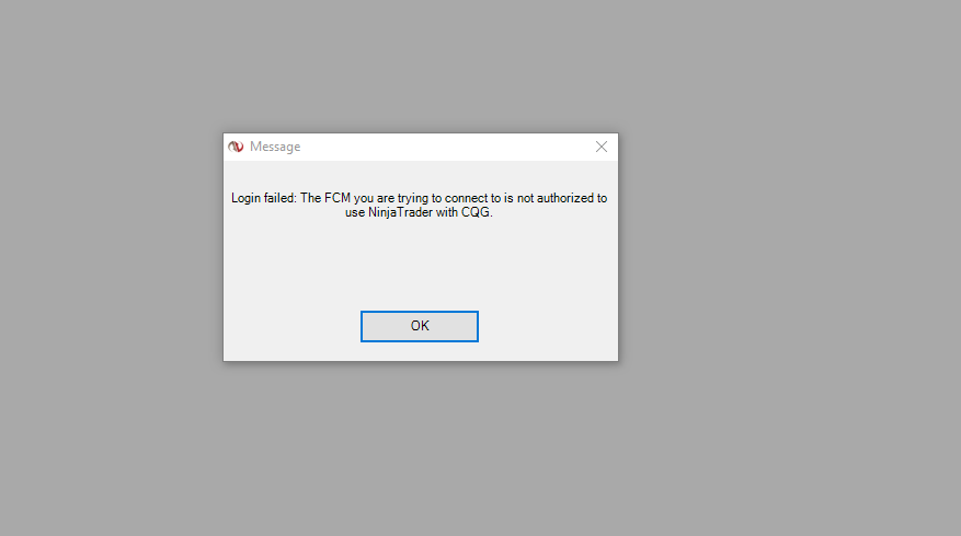 Getting error "Login Failed: The FCM you are trying to connect to is not authorized to use NinjaTrader with CQG.". Was working yesterday and I have a mulit-broker license enabled for CQG.Tags: None