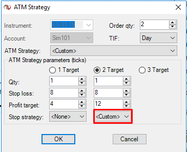 Hello, I am having trouble setting up the stop strategy for a 2 target ATM. Can anyone please advise on the correct setting?