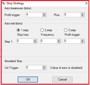 How this will work is you have 2 Targets, one at 4 ticks in profit target and 8 ticks in stop loss, and one at 12 ticks in profit target and 8 ticks stop loss. Once the first target fills in at 4 points in profit, the stop loss of the second target will move to a break even.