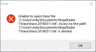 After a month of not using NT7, I could not open the program today. I received the following error: " Unable to open trace file..." (.jpg of error attached). Searching the forum indicated that permissions may be incorrect so I check them at each level and they seemed OK, I am not an expert though.