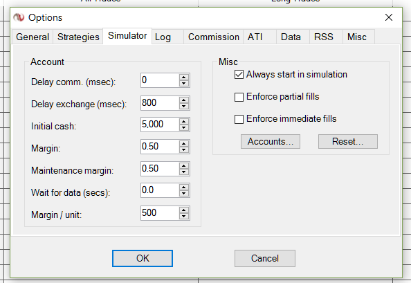 - From the NinjaTrader Control Center window select the menu Tools> Options> Simulator.