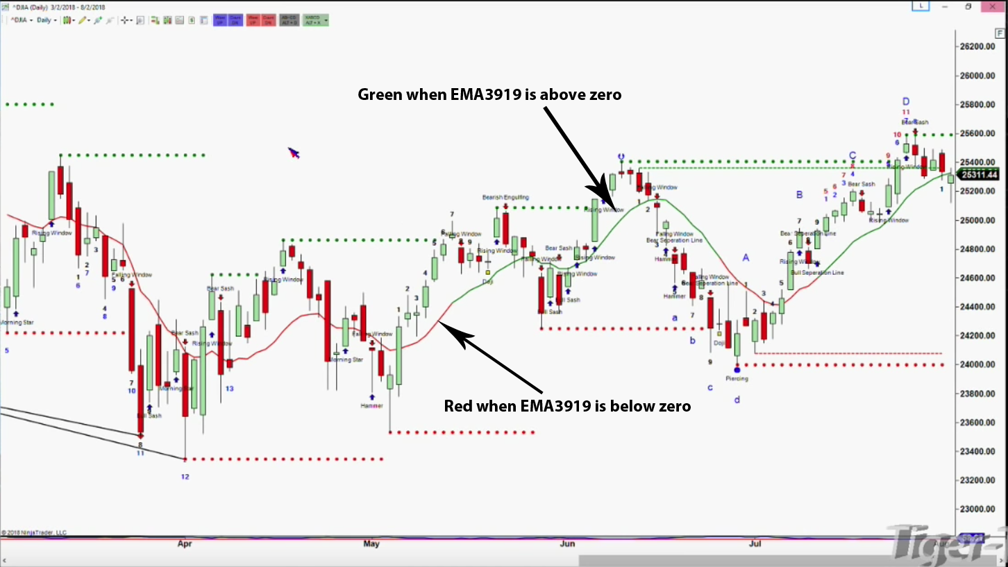 Green when EMA3919 is above zero