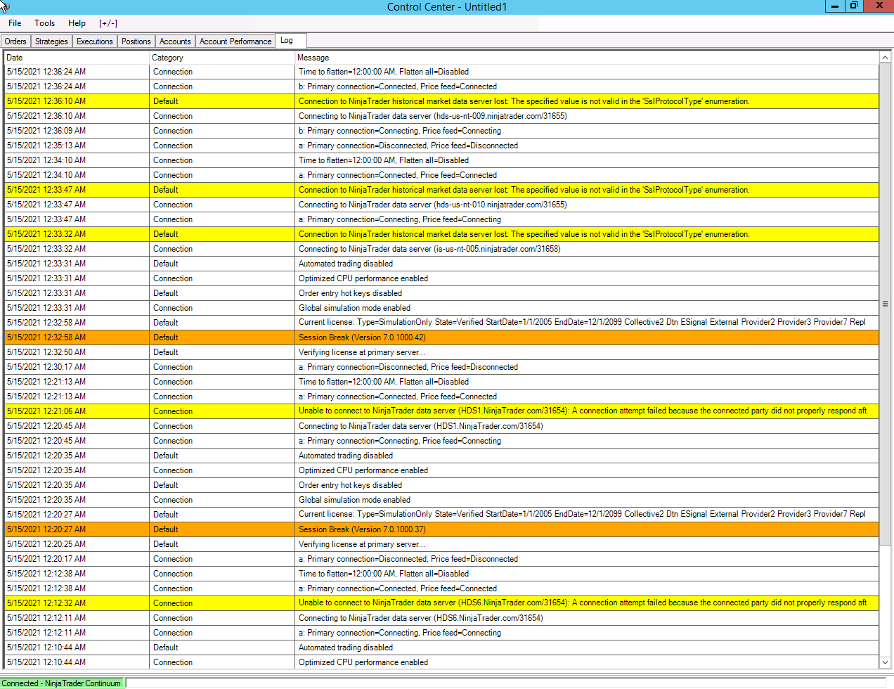 I've tried a Rithmic connection and a CQG connection and both didn't work.