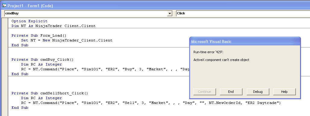 Set NT = New NinjaTrader_Client.Client <-----ERROR OCCURS HERE