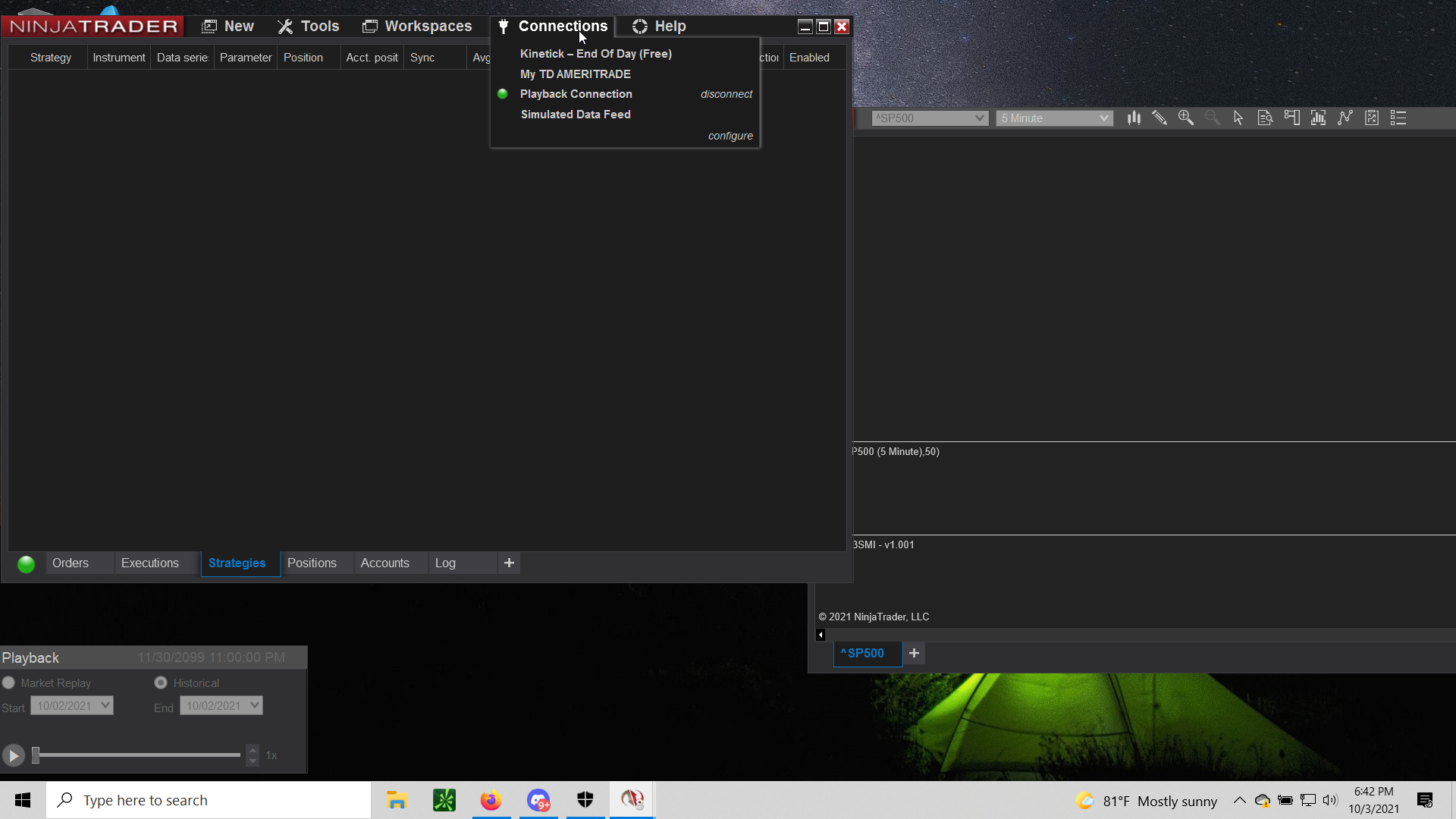 If i connect to my TD account, the chart pulls up the data but I cant see the strategy.