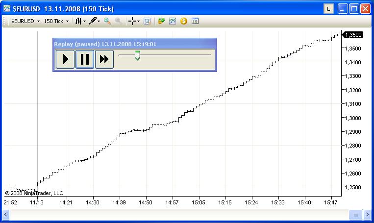 Starting point is the tick data replay from that day. Need to mention that this replay still worked properly yesterday. I am developing a strategy and test the results occasionally with the replay timer. So, these are the only actions I did this weekend: coding, compiling and replay. Nothing else, no activities with outside data feeds.