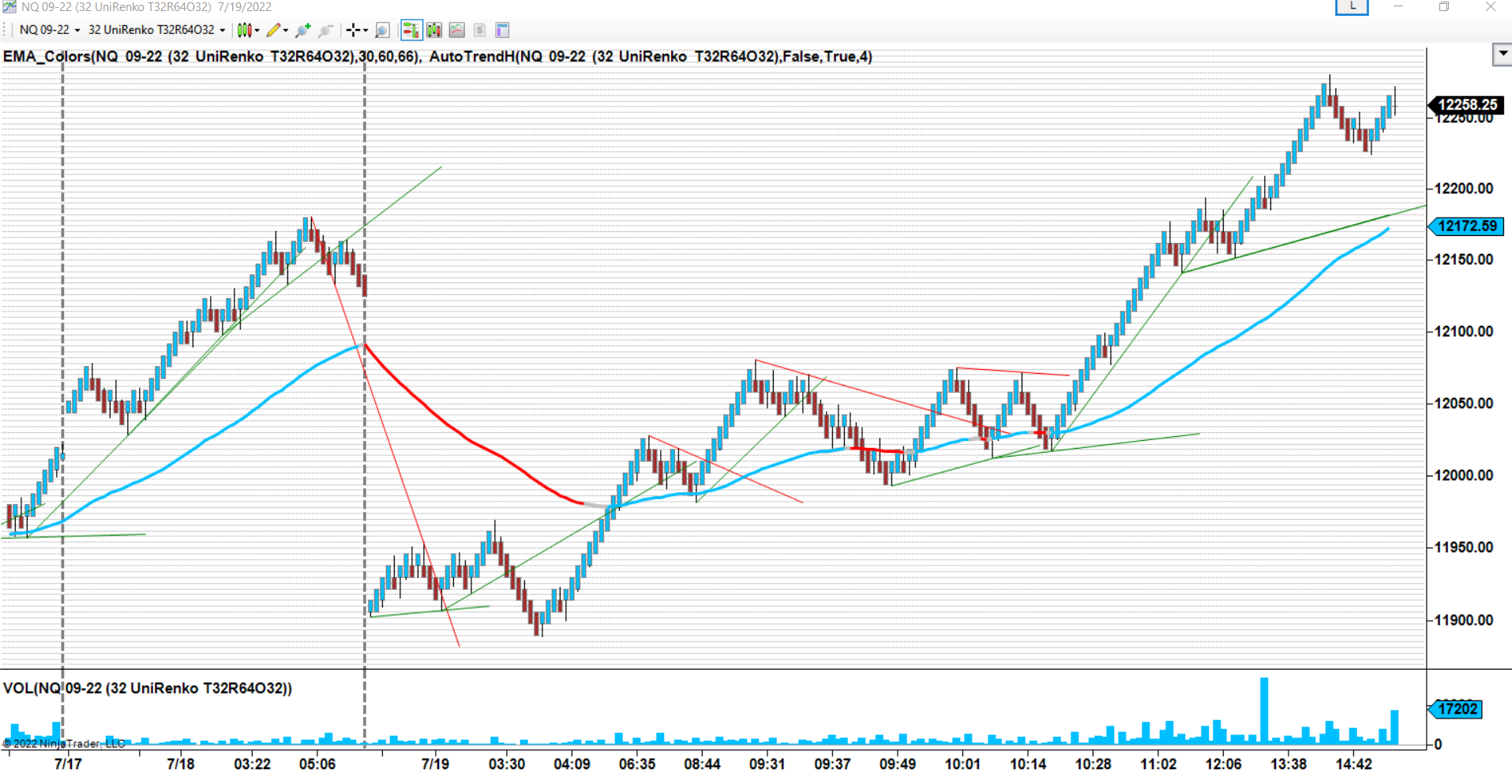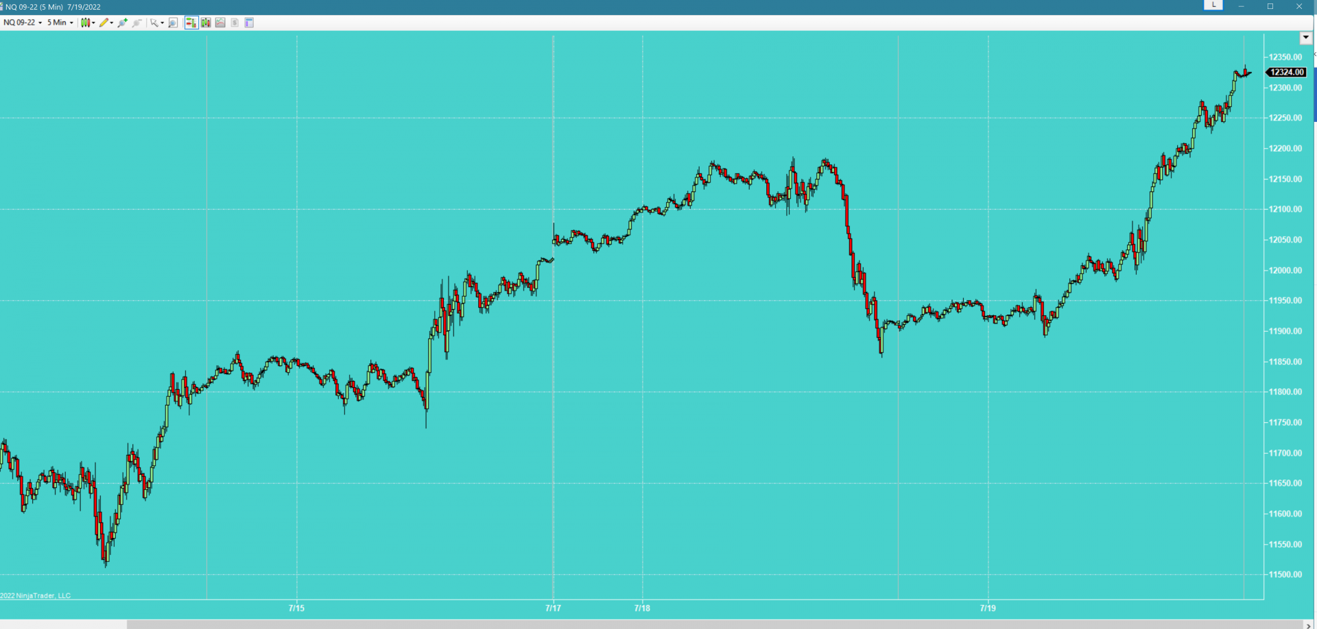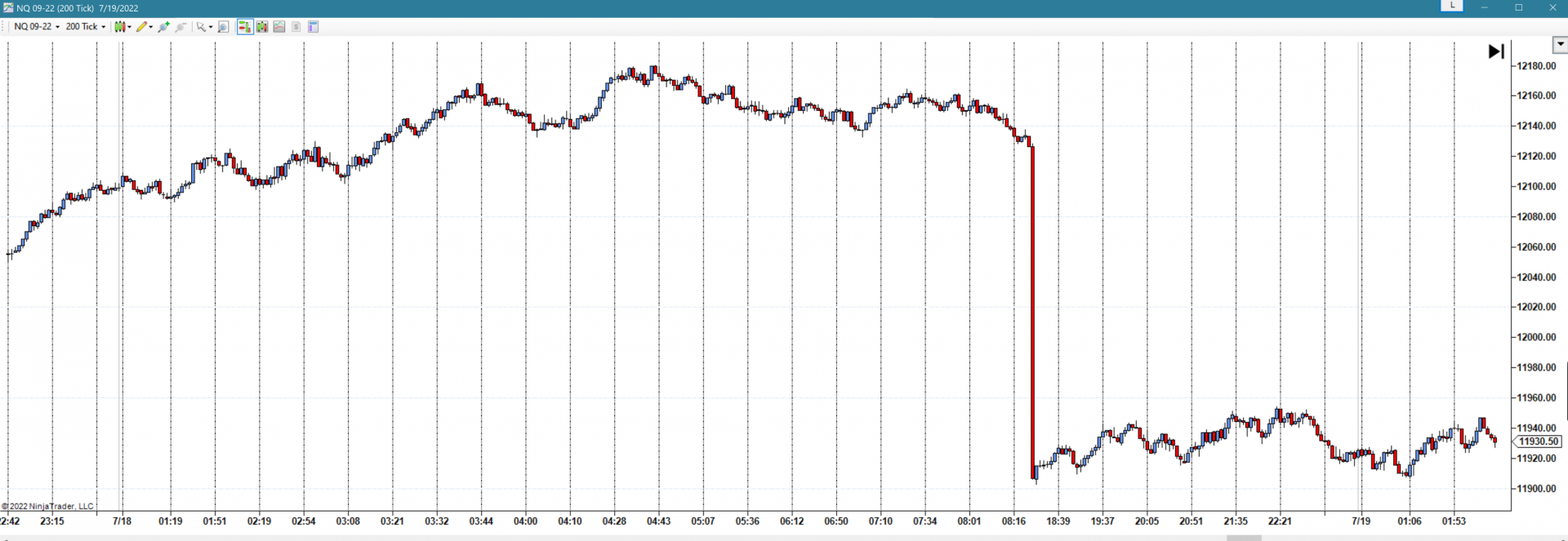 ok very strange, I got the 5 min to look correct for 7/18 for NQ 09-22 using all defaults, but my unirenko chart was completely wrong starting about 8:15am or open onwards, I then tried a basic 200 tick and 8 range chart same defaults as the 5 min and they show same problem as my unirenko charts. Not sure what is going on, in my 8 years on ninjatrader never seen this problem, see attached charts.