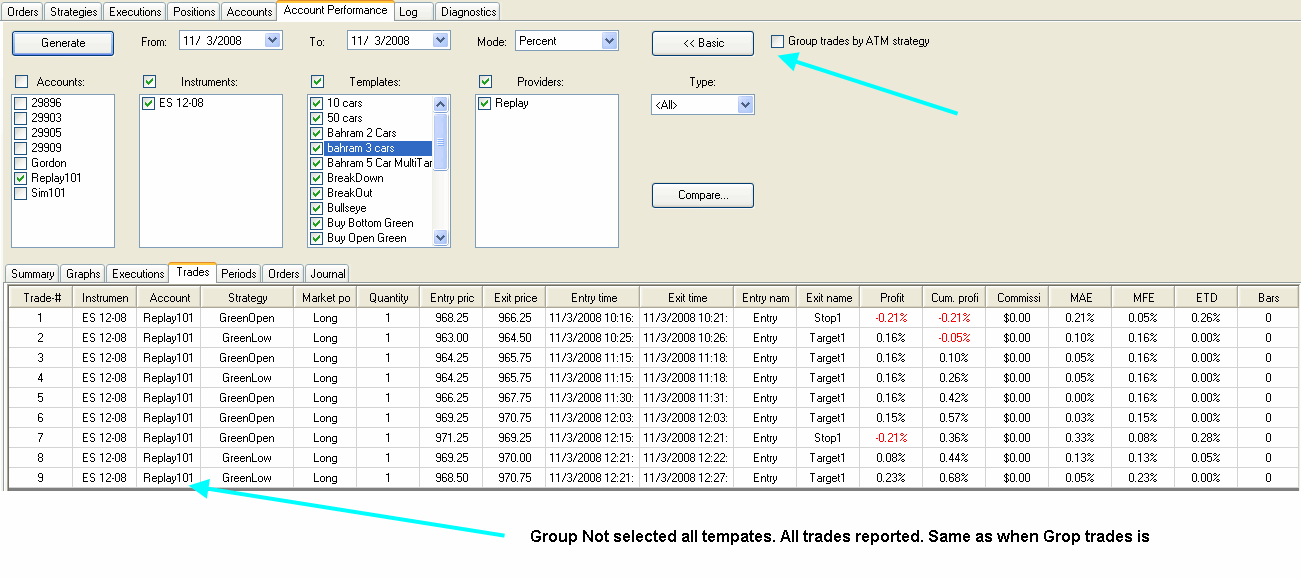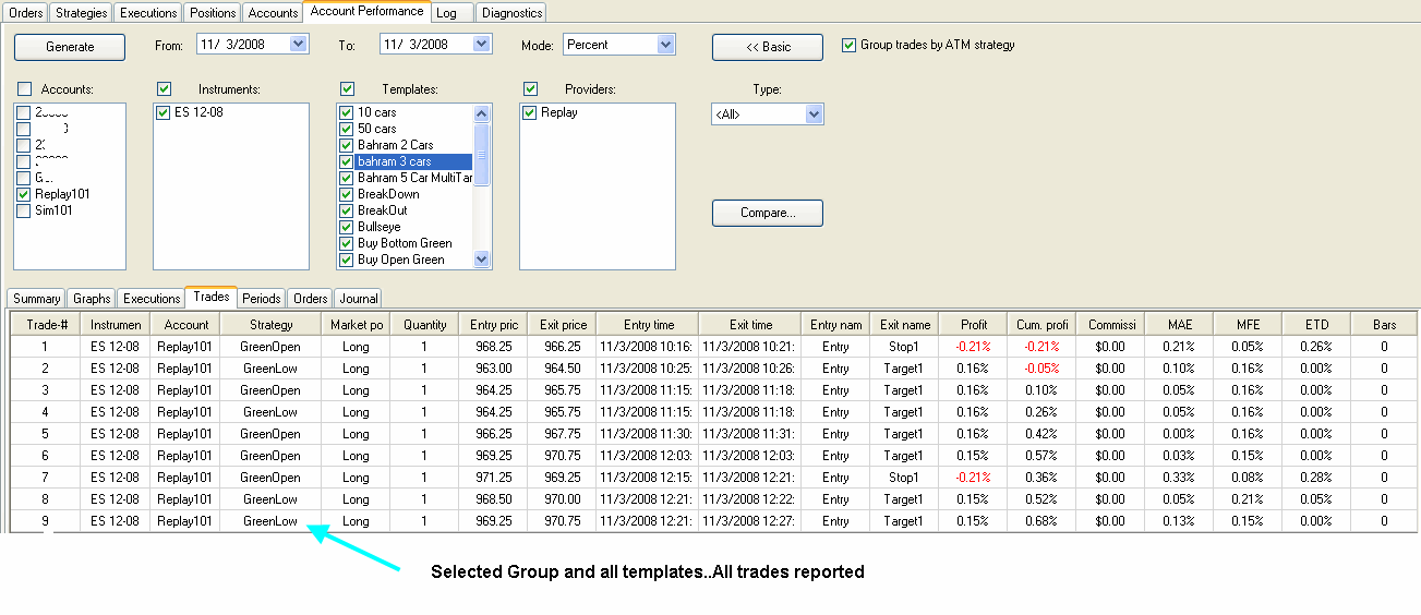 So, i have 100 trades all with the name of "ATM strategy".