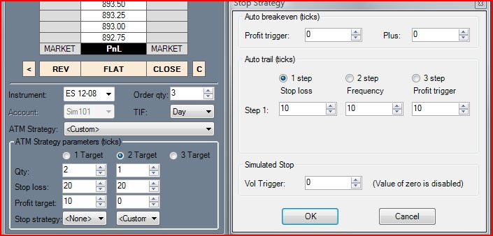 ok i whant to buy 3 contracts with a 20 point stop and when it hits +10 sell 2 and have a trailing stop for the remaining 1 .