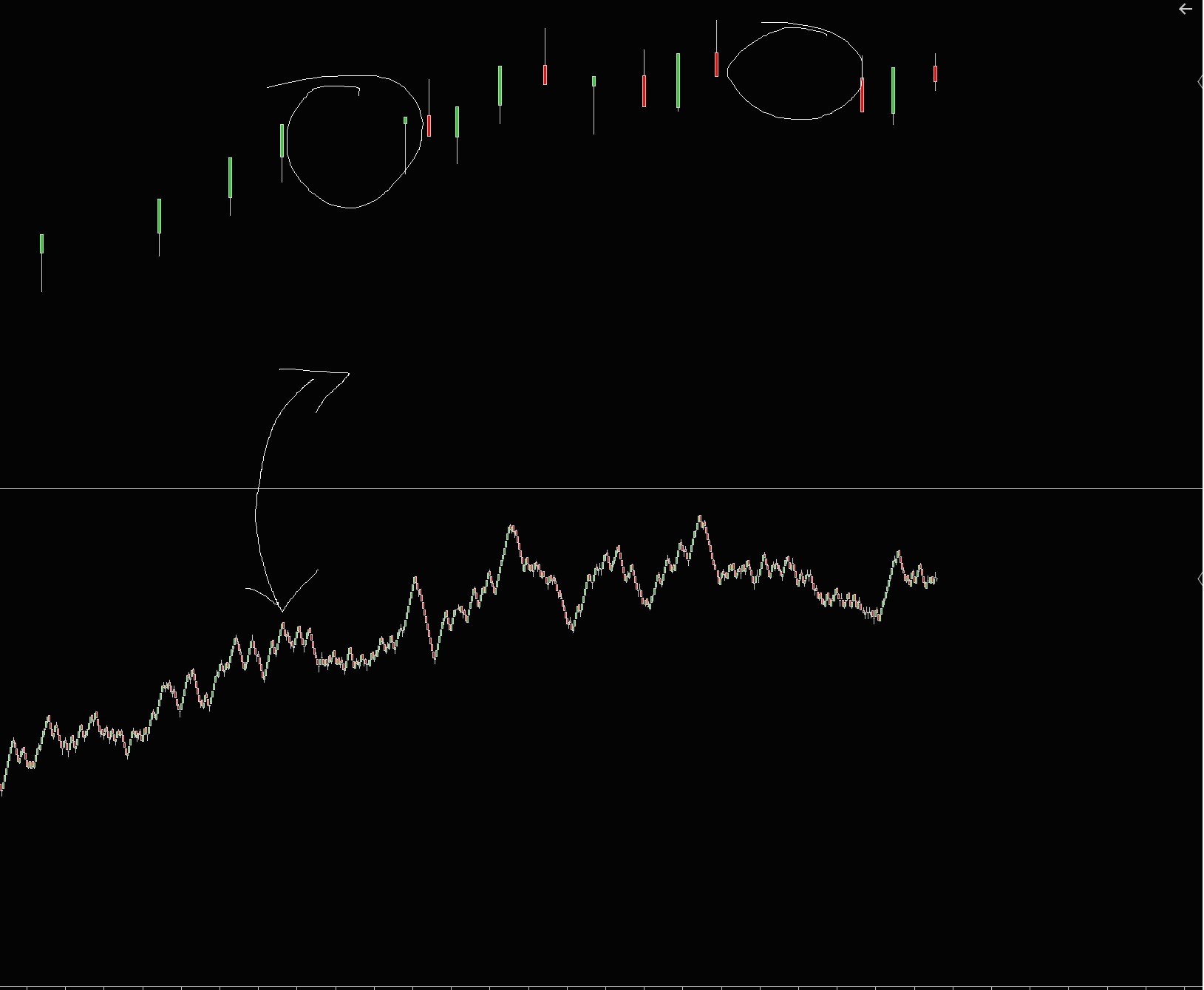 So the lower timeframe should not have an impact on the visual view to the higher timeframe.