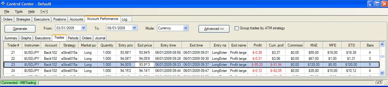 I thinks I've discovered a little bug in Profit Calculation. This is the second time this is happened, so I decided to report this. First time there was an Automated Trading Strategy runing on Real Time with my provider MBT on real account. Second time the scenario was similar, but account was a simulation one (Back102).