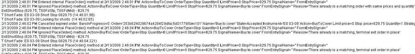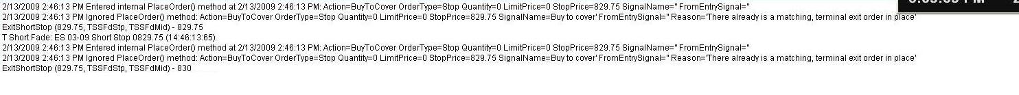 2/17/2009 11:11:04 AM - the ExitShortStop being issued in every ticks from (2/17/2009 11:10:46 AM to 2/17/2009 11:11:04 AM) - but the order get ignored for the same reason