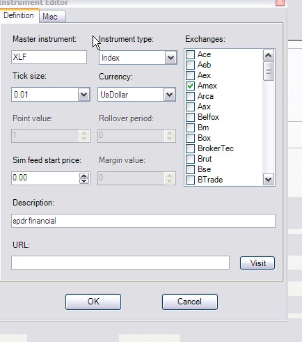 I just signed up to Esignal today to recieve some additional symbols- some such as the $TICK,$VIX, are showing fine in the NT instrument manager however some such as XLF, XLP,USO, are missing. I have double checked with Esignal tech support and we confirmed throught the esignal data manager that I am able to recieve them. Any ideas,
