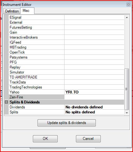 I'm trying to create the chart using Yahoo provider for canadian stocks (e.g. - YRI.TO). I get the exception - "Invalid instrument name".