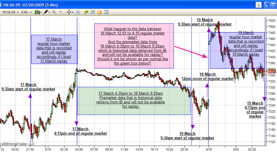 What happen is if I load 3rd March 2009 replay data, 3rd March premarket will not be shown, it will only show market hours data.