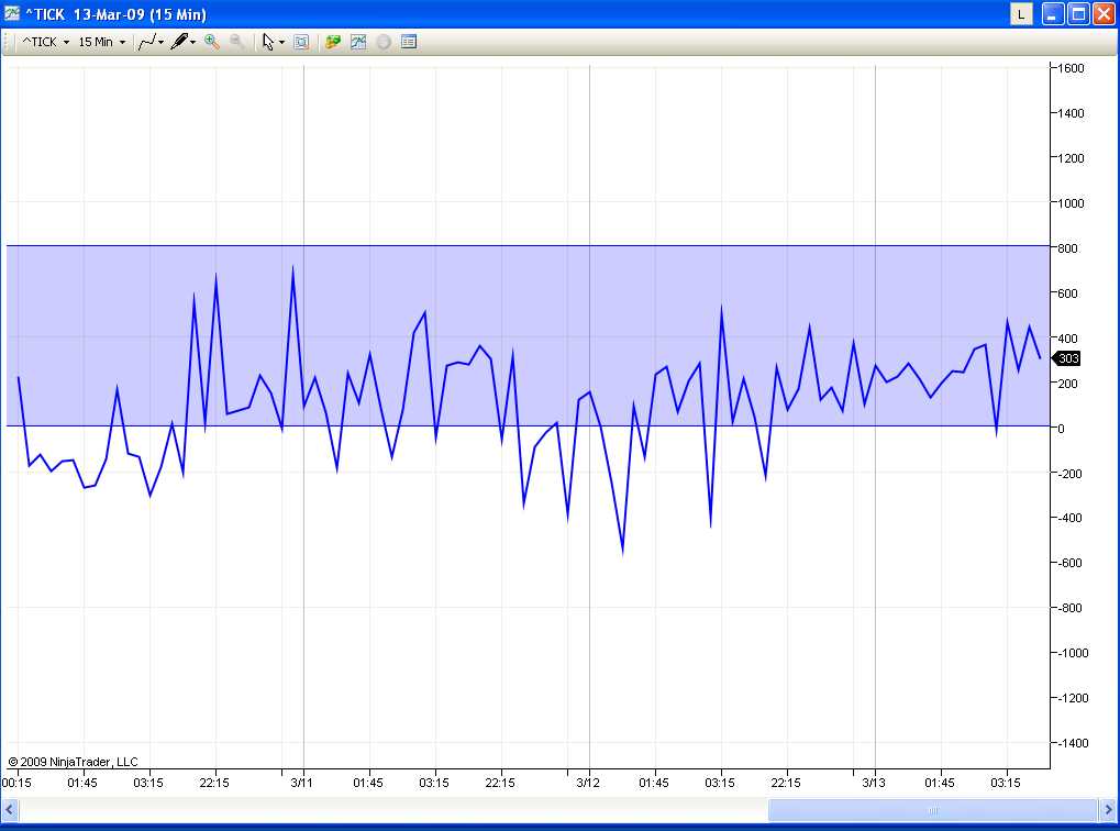 I tried to create an indicator to overlay a rectangle over the last 200 bar and high (800) and low (0) of the ^TICK index with the following code: