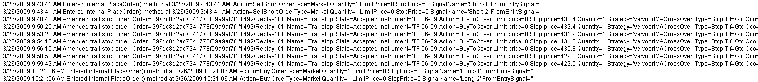 Enclosed is my Executions Tab and the Output screen of TraceOrders of a strategy... The exits dont seem to show in the TraceOrders output screen, even though it is posted correctly on the Execution Tab.